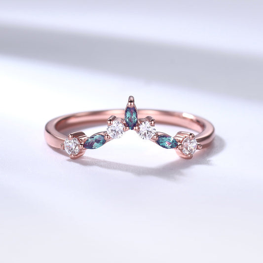 Alexandrite Wedding Band Moissanite Rose Gold Curved Matching Ring Birthstone Gift