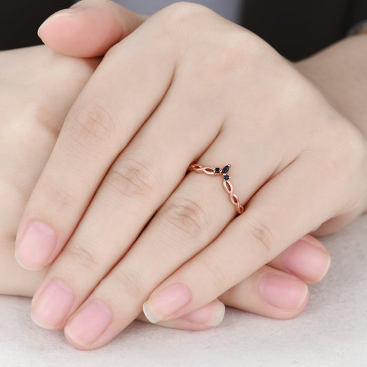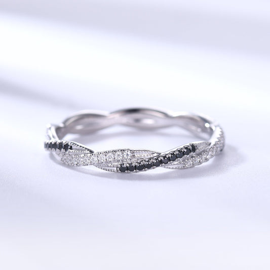 Twisted Black Diamond Wedding Band Anniversary Ring Rose Gold Infinity Full Eternity