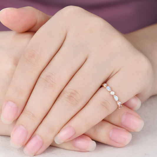 Vintage Moonstone Wedding Band Moissanite Rose Gold Marquise Matching Ring
