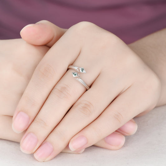 Unique Snake Kite Cut Moss Agate Wedding Band White Gold Adjustable Open Ring