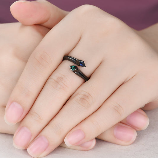 Unique Black Gold Snake Sapphire Emerald Wedding Band Adjustable Open Ring