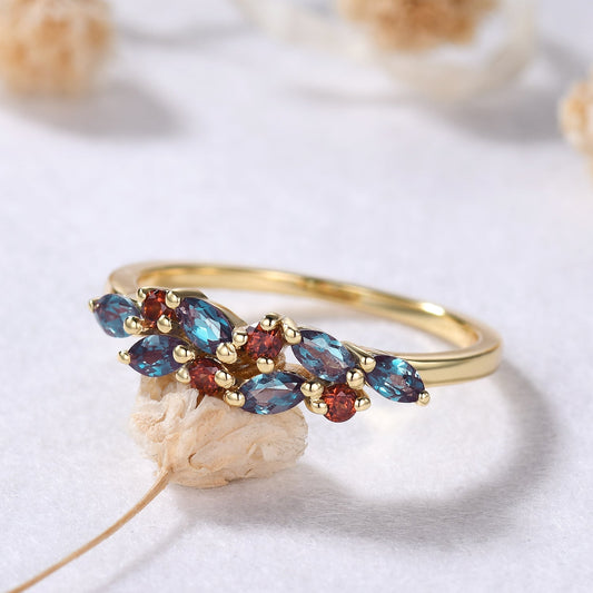 Vintage Alexandrite Garnet Yellow Gold Ring Solid Gold Wedding Bridal Cluster Ring