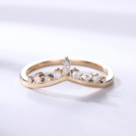 Yellow Gold Marquise Moissanite Wedding Ring Curved Chevron Matching Band for Women