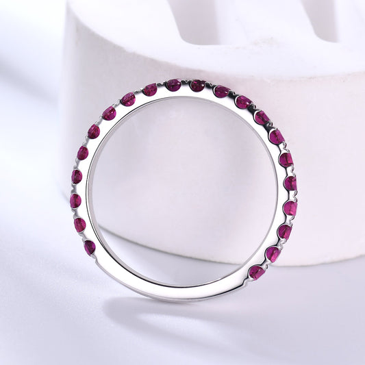 Natural Ruby Wedding Ring For Her 3/4 Eternity Band 14k White Gold Micro Pave 2mm Band