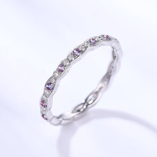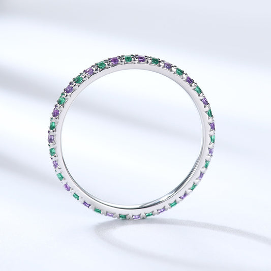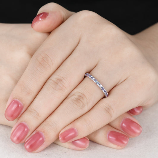 Birthstone Wedding Band Full Eternity Anniversary Ring Amethyst Emerald Stacking Ring