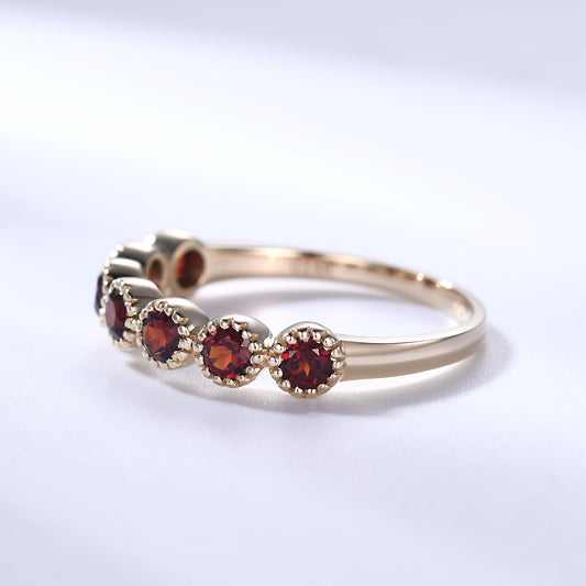 Garnet Wedding Band 14k Gold Ring Milgrain 3mm Birthstone Birthday Gift For Her