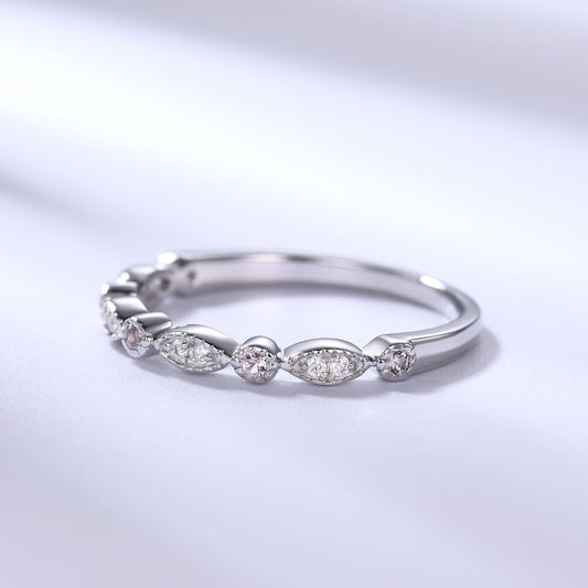 Retro Vintage Morganite Moissanite Wedding Band 14k Rose Gold Dainty Ring for Women