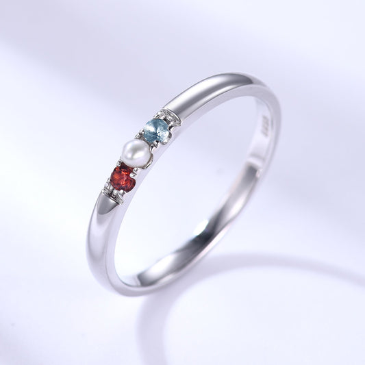 2mm Family Birthstone Ring Garnet Pearl Topaz Band 14k White Gold Gifts for Women