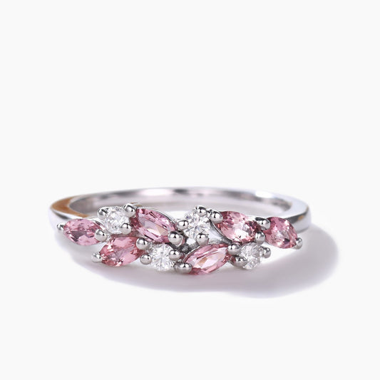 Pink Sapphire and Diamond Wedding Ring Solid White Gold Half Eternity Annivery Ring