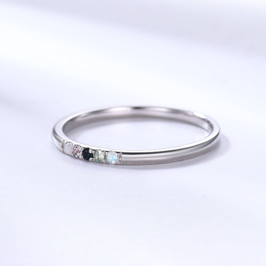 2mm Personalized Birthstone Gold Ring for Mother Ruby Alexandrite Turquoise Topaz 4-stone Dainty Band
